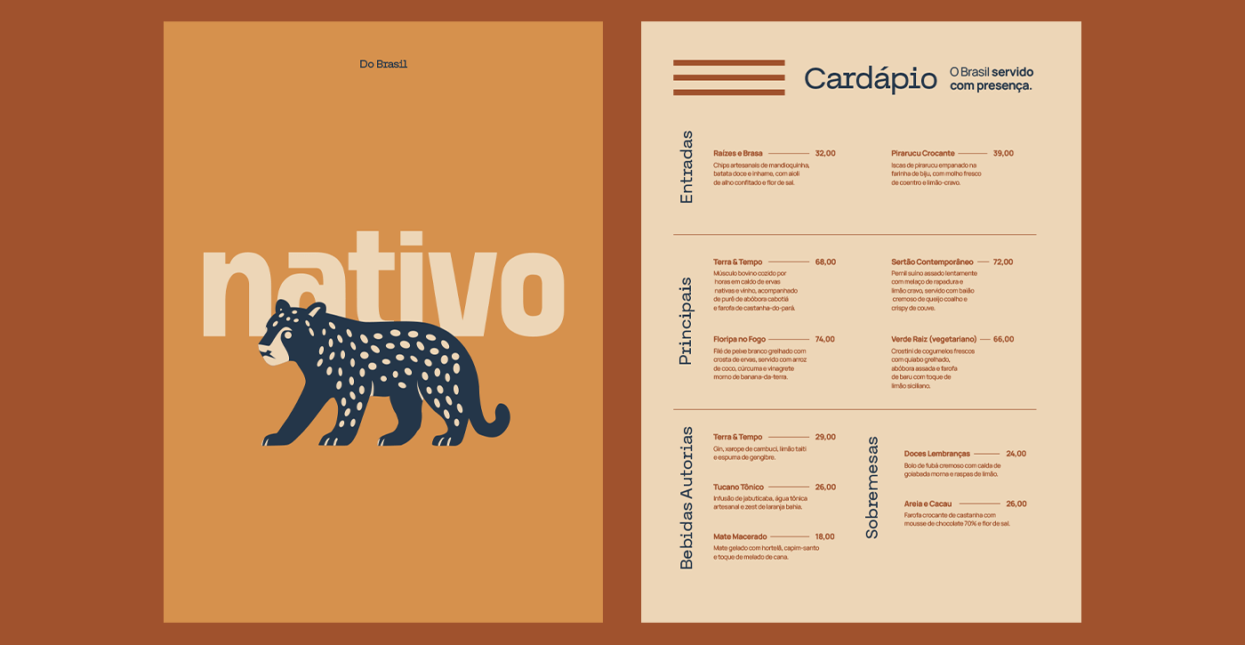 O desafio do projeto era construir uma identidade visual que fosse autêntica e elegante, sem recorrer a clichês folclóricos. Era necessário equilibrar a riqueza cultural brasileira com uma estética moderna, que conversasse tanto com o público local quanto com turistas que valorizam experiências gastronômicas com alma e curadoria.
